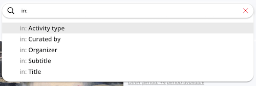 - in: – search within specific fields (e.g. curator or title). After selecting in: , specify the field you want.