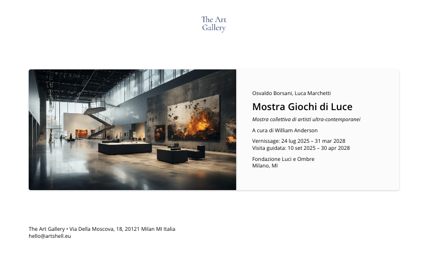 Il sistema di esportazione e condivisione degli eventi di Artshell ti consente di condividere facilmente i tuoi eventi tramite email, link o un file Excel.