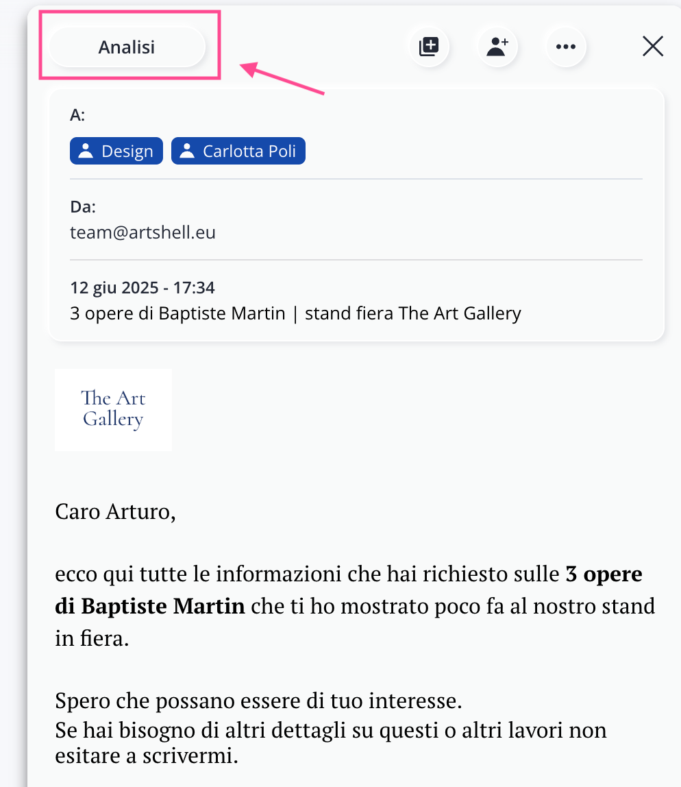 Per visualizzare le analisi, seleziona l’email di tuo interesse e clicca sulla voce Analisi in alto.