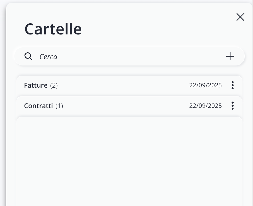 Entrando in una sezione, puoi visualizzare tutte le cartelle esistenti, cercarle tramite la barra di ricerca o crearne una nuova cliccando su Aggiungi nuova.